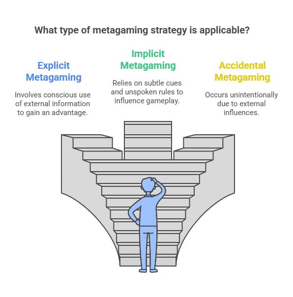 The term metagaming is derived from the prefix “meta,” which means going beyond something. In this regard, the core meta gaming meaning implies going beyond the set gameplay and rules. This includes applying strategies, specialized knowledge, or specific actions that go beyond the basic mechanics of the game.